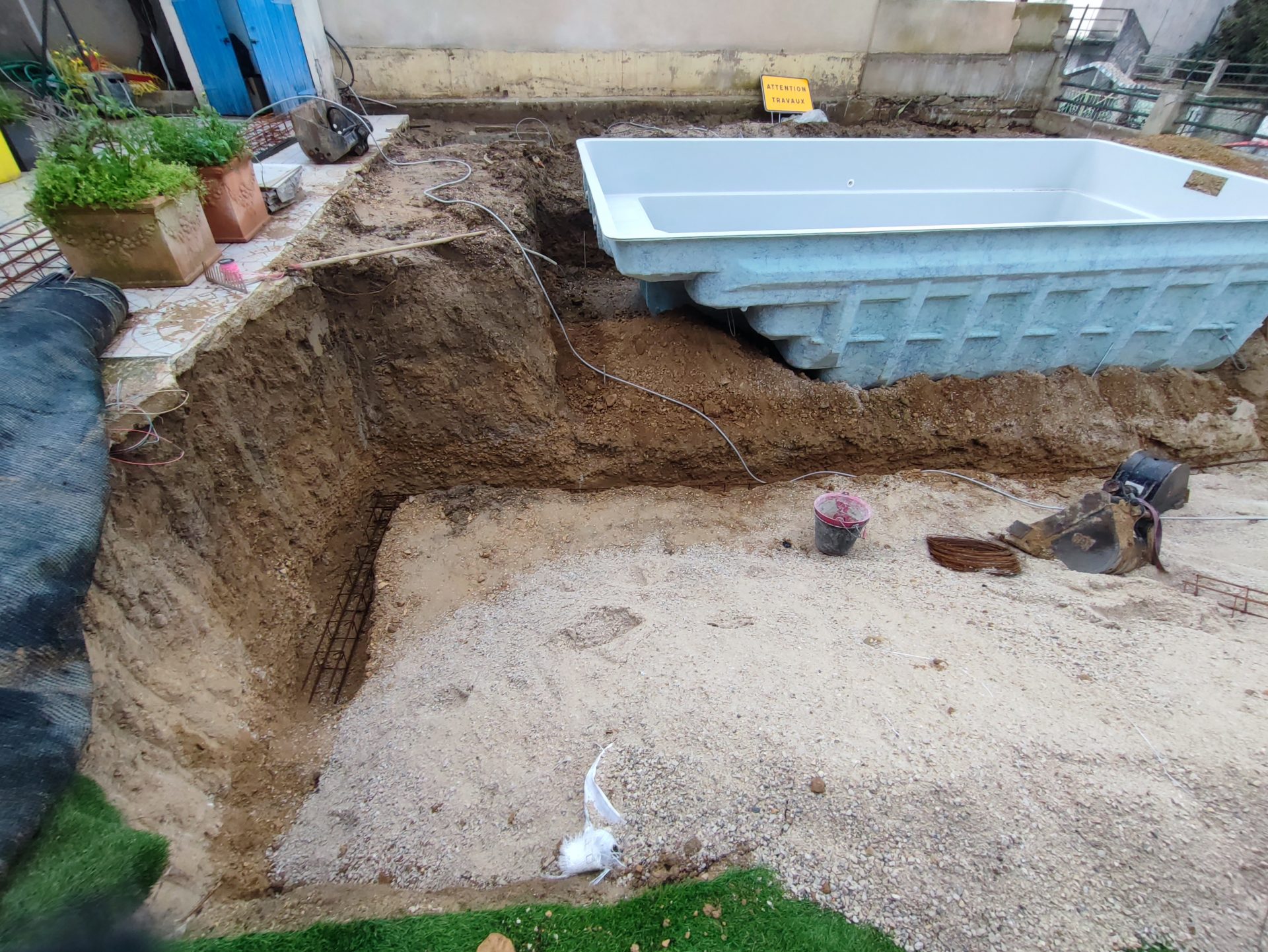 Avec une attention méticuleuse aux détails de la maçonnerie, le projet a démarré par un terrassement précis, conforme aux plans d’architecte, préparant le terrain pour la future piscine et le jacuzzi. Nos équipes, fortes d’une réputation solide dans la réalisation de travaux extérieurs, ont creusé, nivelé et consolidé les fondations, établissant un socle solide pour l’accueil de la piscine coque. La maçonnerie a joué un rôle clé, avec une réalisation soignée qui a posé les bases fiables pour l’intégration harmonieuse de la piscine dans son environnement.